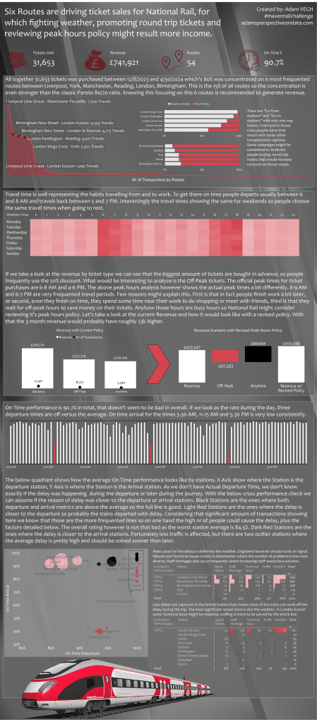 In the past few days I spent some time again to participate Maven Analytics’ new challenge, the Rail Challenge. Couple of months since I’ve participated last time, and now it was great to work on some off-work topic again.